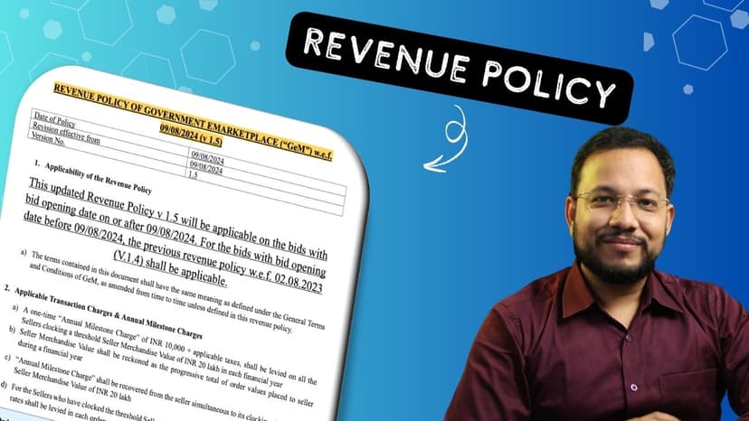 The Government e-Marketplace (GeM) has emerged as a transformative initiative of the Indian Government, aimed at reforming and streamlining public procurement. Central to GeM's operational effectiveness is its Revenue Policy, a structured approach designed to ensure transparency, sustainability, and equitable revenue generation while maintaining ease of procurement.